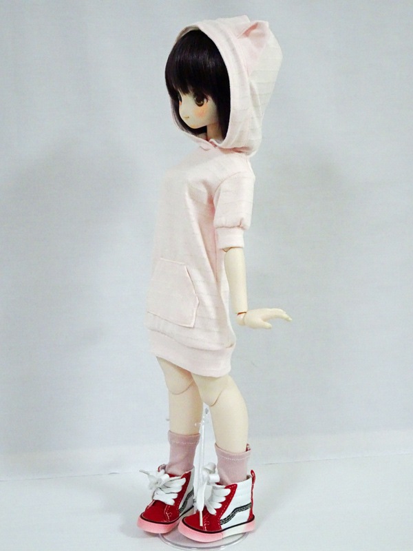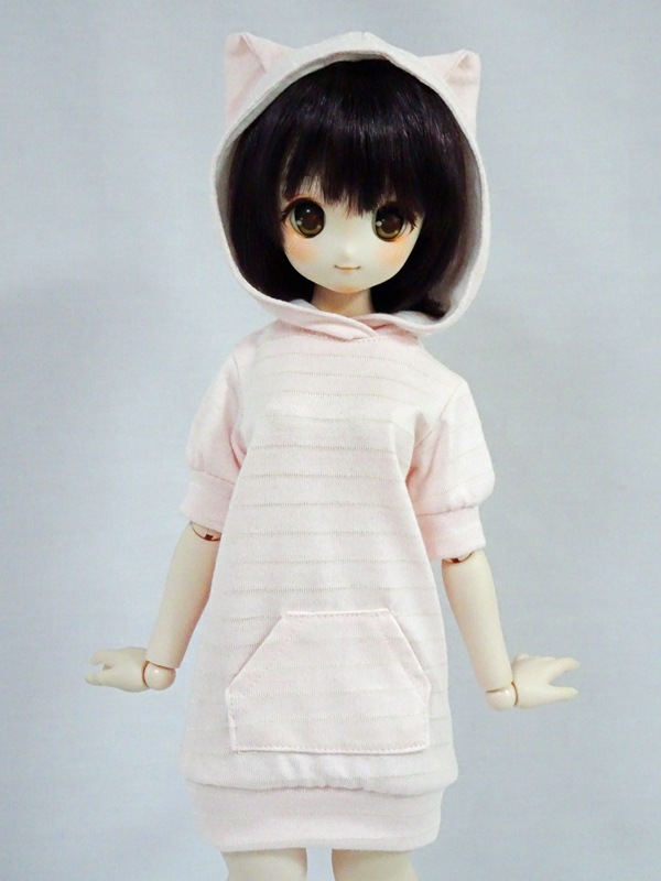 MDD/アゾン45 ねこみみパーカーワンピース/パフスリーブ(ピンクボーダー)についてつぶやく