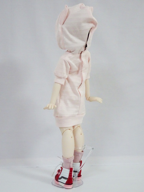 MDD/アゾン45 ねこみみパーカーワンピース/パフスリーブ(ピンクボーダー)