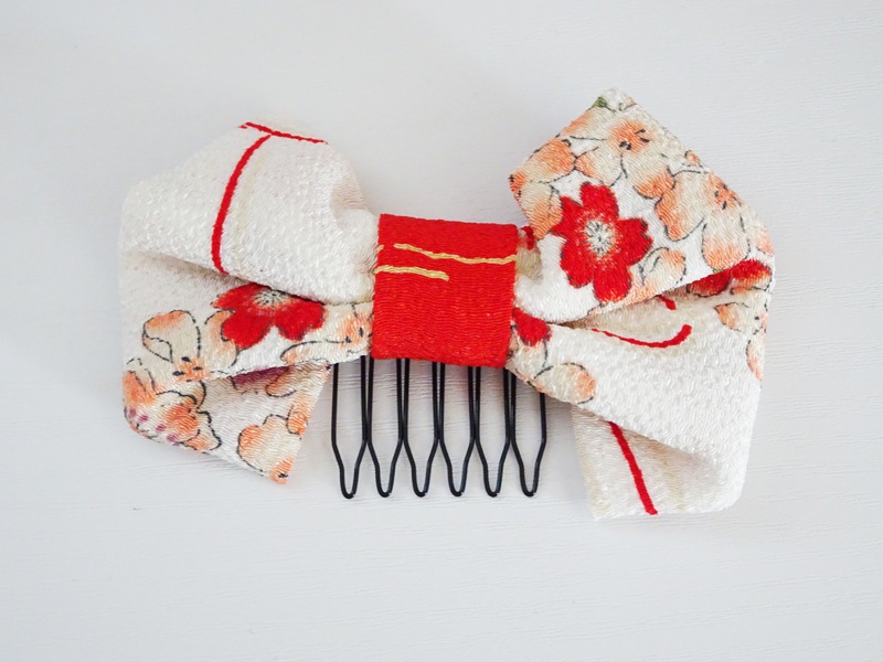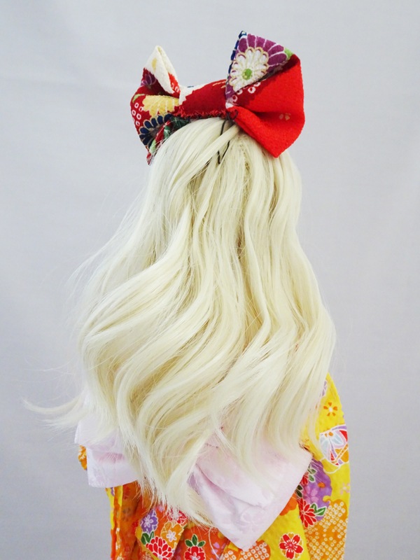 【単品】7.5~9インチヘッド ちりめんの大きなリボンの髪飾り(白)