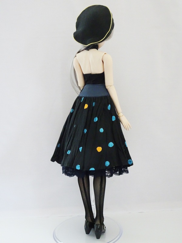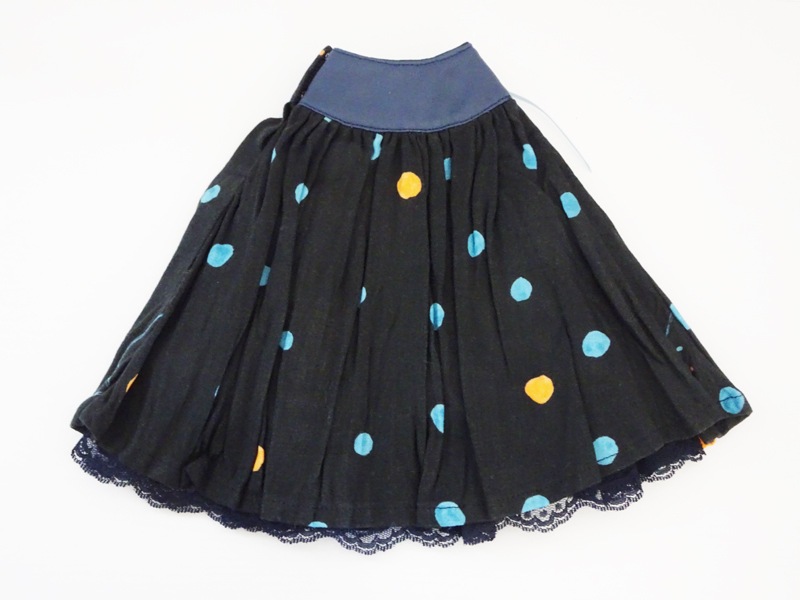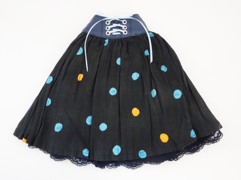 素材:フェイクレザー(ウエスト)、Wガーゼ(スカート)、レース、サテンリボン