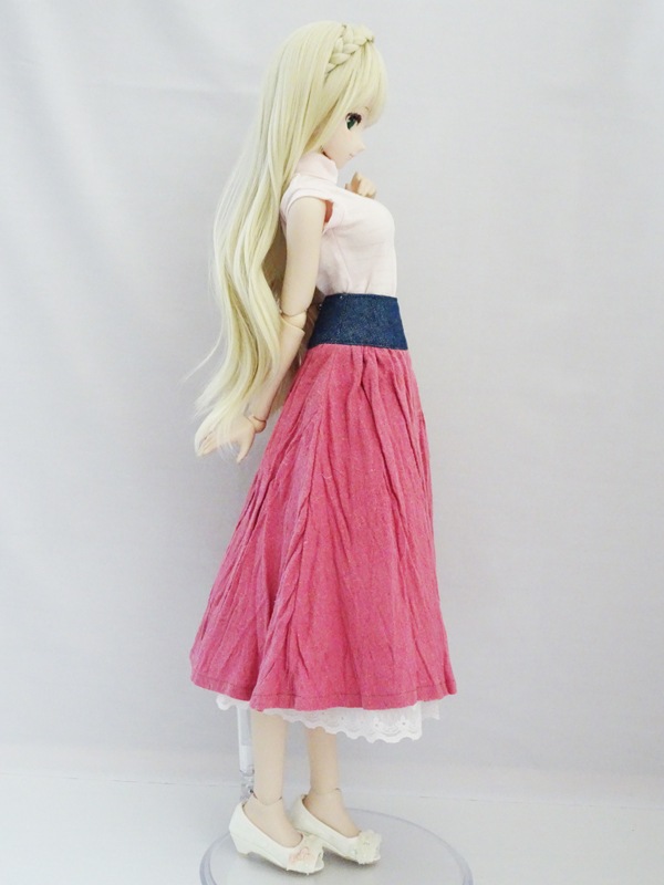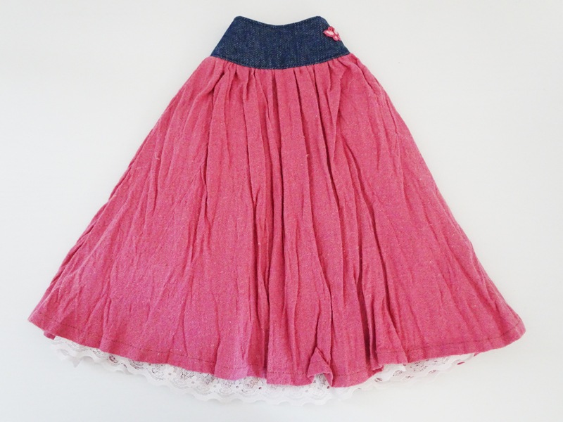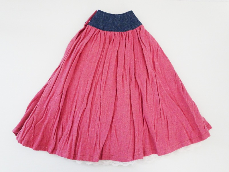 素材:デニム(ウエスト)、綿麻(スカート)、レースモチーフ