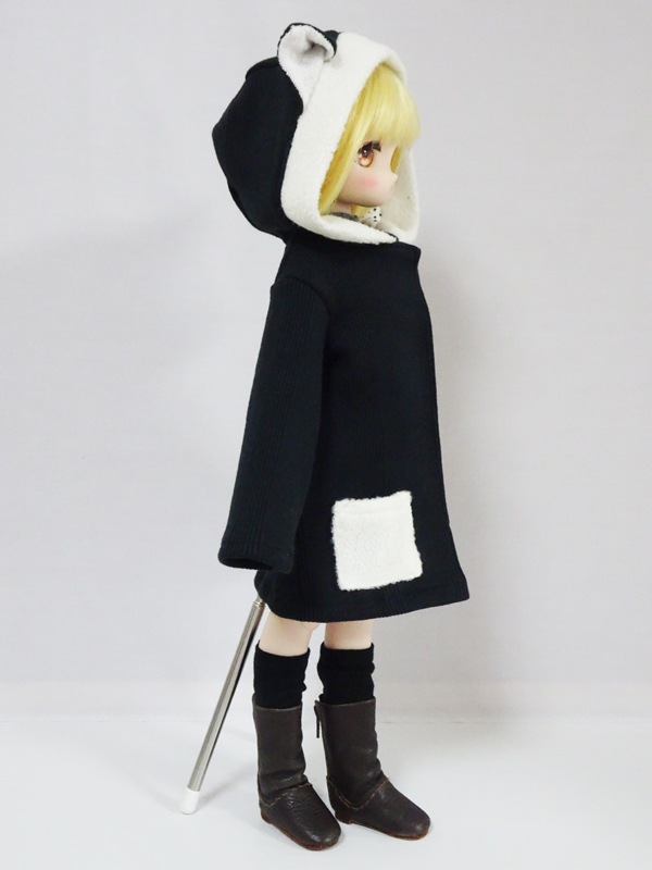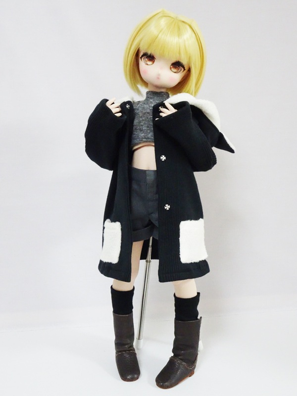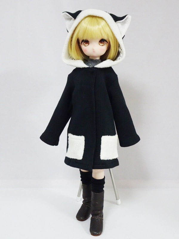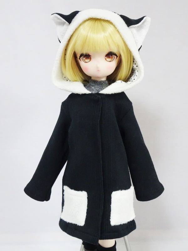 MDD/アゾン45/DDP アニマルコート/ねこ(黒ランダムリブ/白モコ)