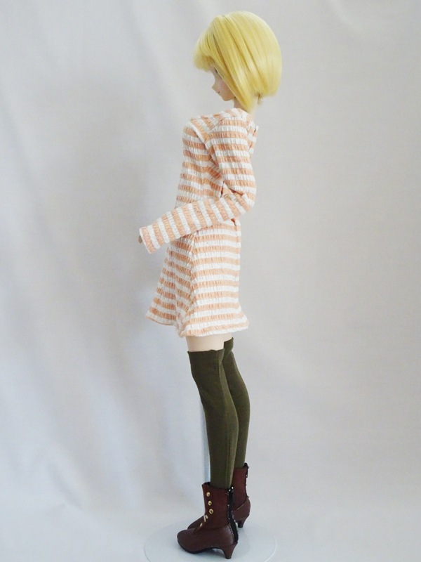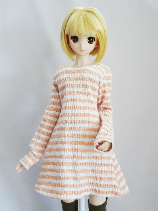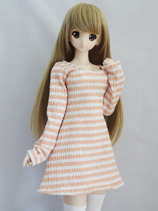 DDS/DD/DDdy/スマートドール 長袖ニットワンピース/Uネック/ミディロング丈(ぽこぽこオレンジボーダー)