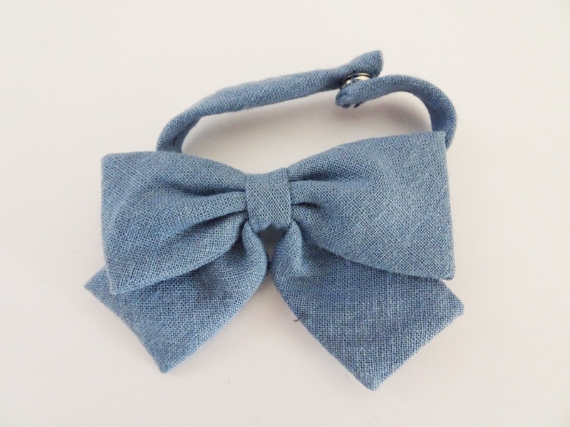 【単品】40cm~60cmフリーサイズ シャツブラウス用大きめリボンネクタイ(スモークブルー)