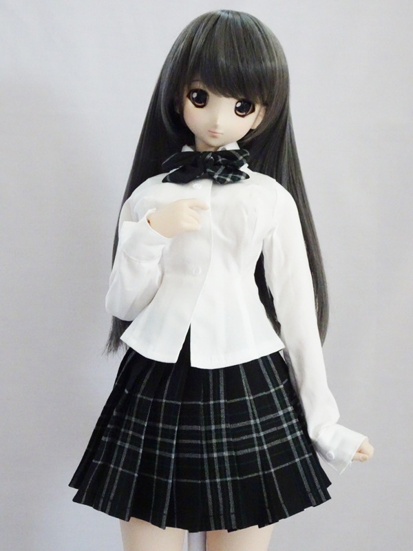 MDDの写真ではセーラーブラウスに着用していますが、やや襟首が詰まっています。