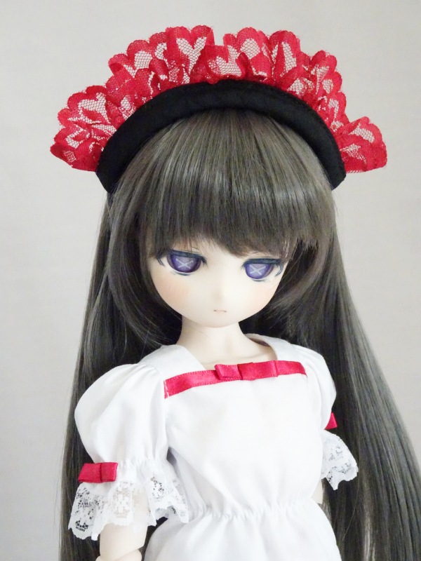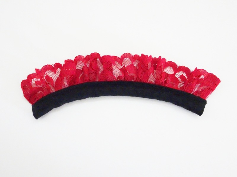 【単品】9インチ ヘッドドレス(土台なし/黒×赤レース)
